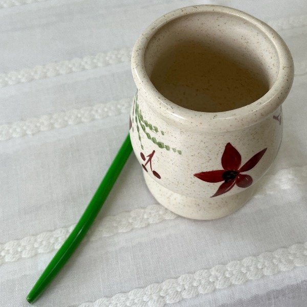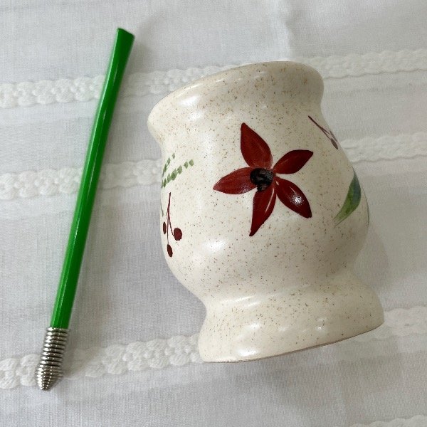 Mate de cerámica jaspeada pintada a mano. Medida 6 cm x 8 cm.