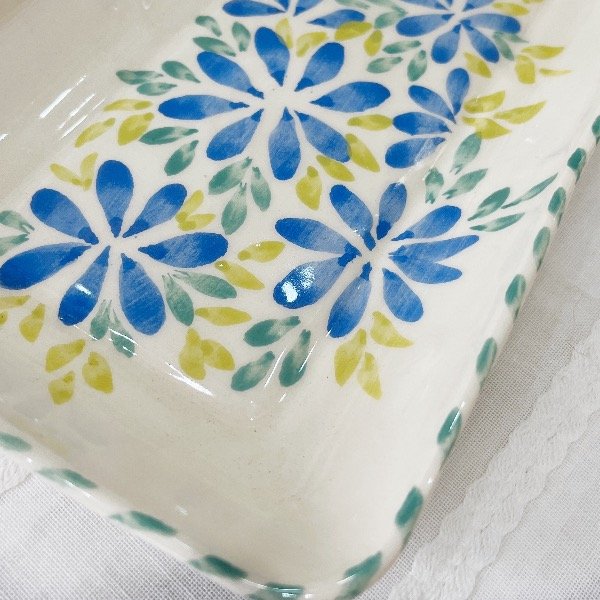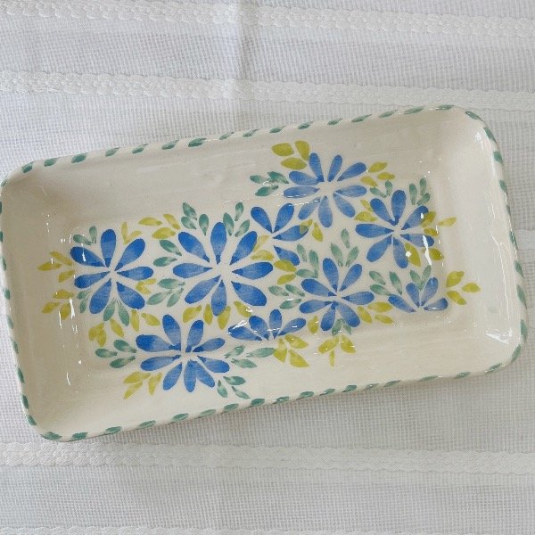 Bandeja de cerámica artesanal pintada a mano. Medidas 14 cm de ancho por 25 cm de largo.