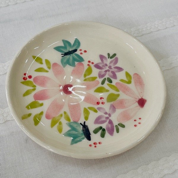 Plato de cerámica pintado a mano, mide 12 cm de diámetro.