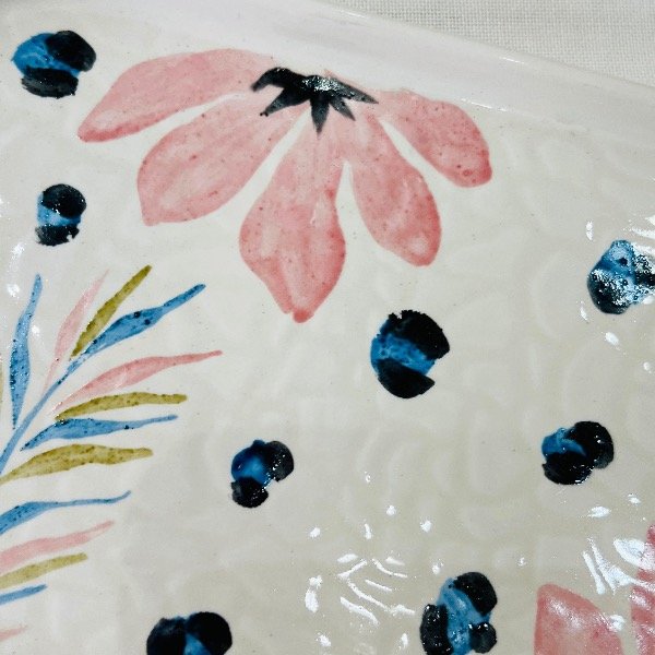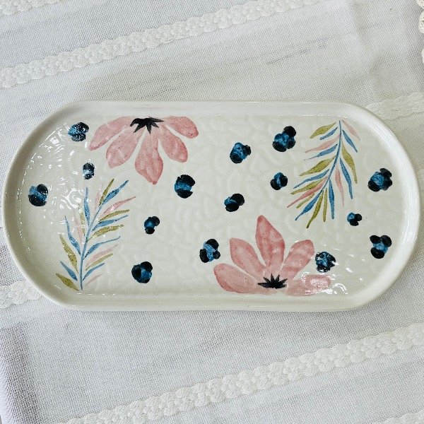 Super tazón de cerámica pintada a mano más la bandeja ovalada de cerámica.