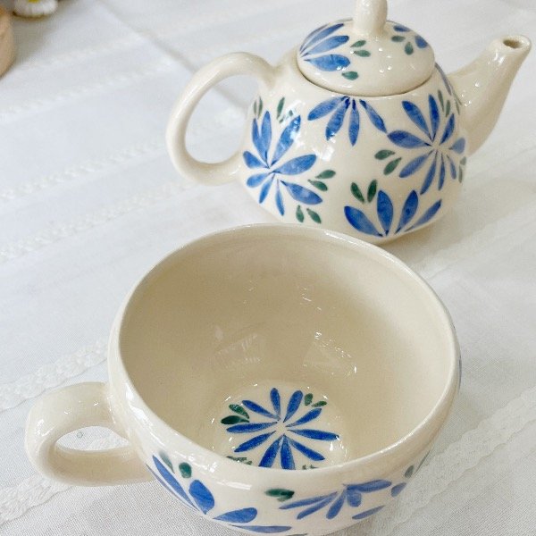 Un Té para vos, para que disfrutes un hermoso momento. Incluye tetera individual más la taza de té. Todo hace conjunto a una sola pieza.