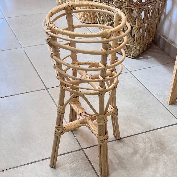 Portamaceta de mimbre, hecho a mano. Medida 60 cm de alto por 20 cm de diámetro.