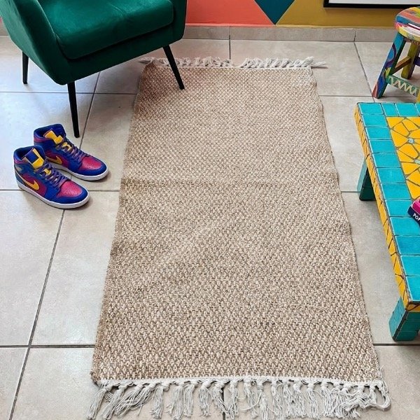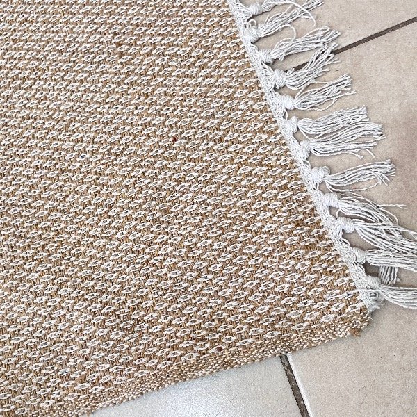 Alfombra de yute combinada con hilo de algodón. Ideal para cualquier rincón de tu hogar.