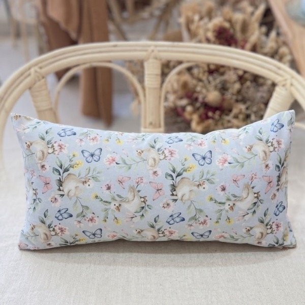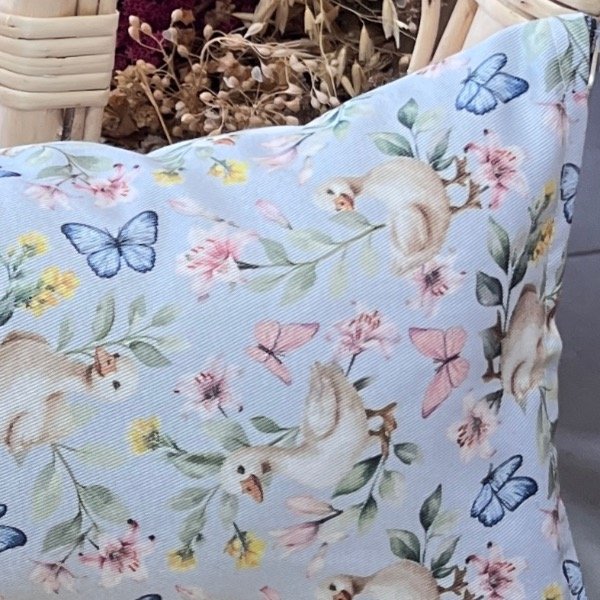Almohadón de gabardina con estampado patitos y mariposas. Si te gustan los patitos este es ideal para vos.