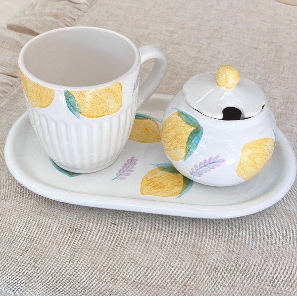 Transformá tus mañanas con la frescura y el encanto de nuestra Colección Limones. Este set de tres piezas está diseñado para quienes disfrutan de los detalles y buscan piezas únicas que cuenten una historia en su mesa.