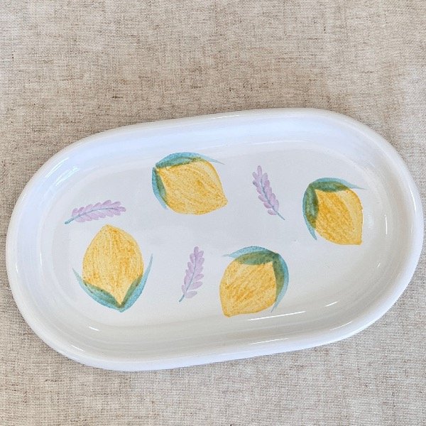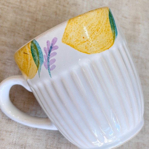 Cada pieza está modelada y pintada a mano, lo que garantiza que no existan dos iguales. Su diseño de limones vibrantes sobre el blanco natural de la cerámica aporta una calidez rústica y moderna a la vez.