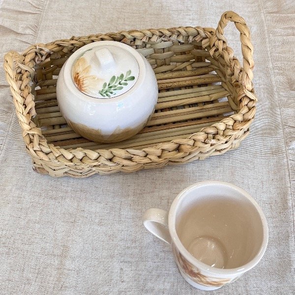 Añadí un toque cálido y rústico a tus mañanas o tardes de té con este conjunto exclusivo. Este set combina la nobleza de las fibras naturales tejidas a mano con la delicadeza de la cerámica pintada, creando una pieza funcional y decorativa para cualquier rincón de tu hogar.