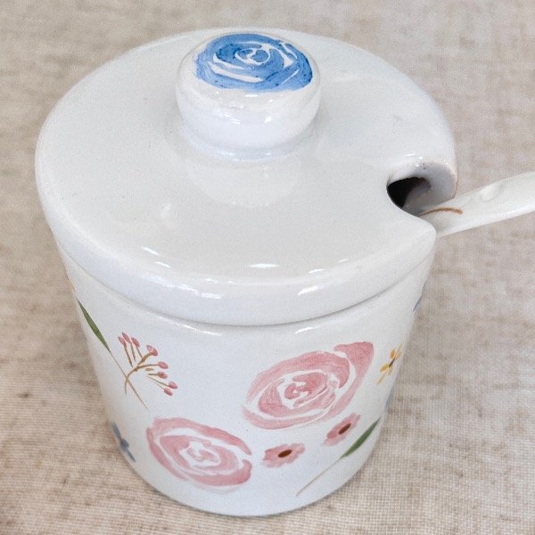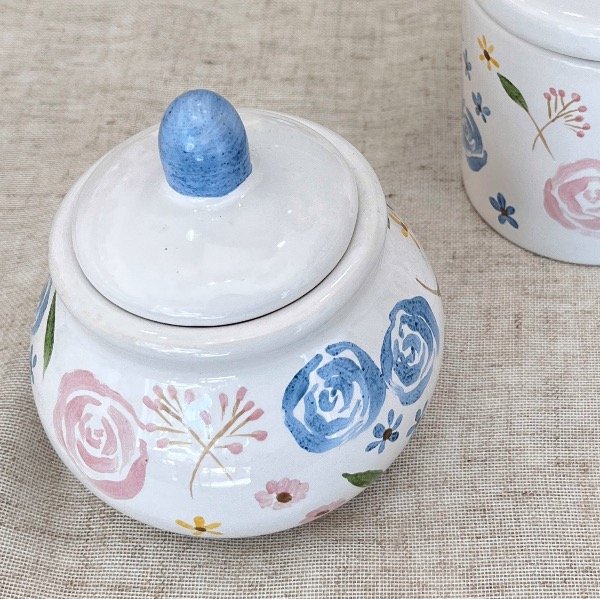 Hay pequeños objetos que transforman un momento cotidiano en una pausa especial. Nuestra azucarera de esmalte blanco es uno de ellos. Con un diseño de inspiración botánica y pinceladas delicadas, esta pieza de cerámica artesanal aporta calidez y estilo a tu mesa o rincón de café.