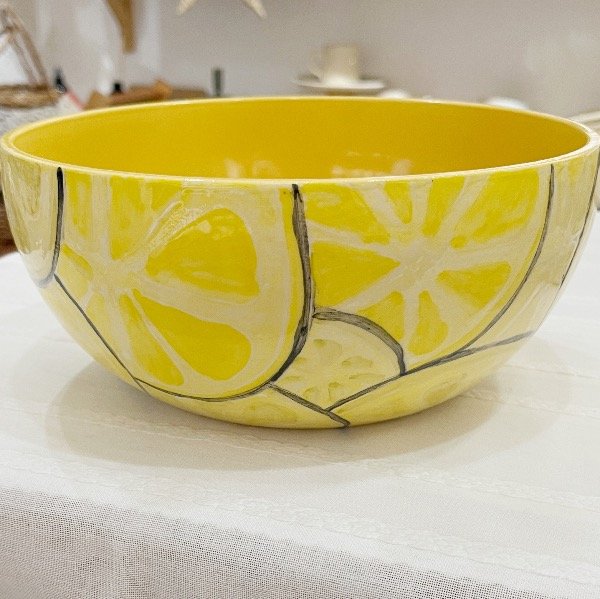 Llevá la frescura de la huerta directo a tu mesa con nuestra ensaladera de la línea Limones. Esta pieza no es solo un recipiente, es una celebración del diseño hecho a mano. Su tamaño es ideal para presentar ensaladas abundantes, pastas frescas o incluso como un frutero protagonista en tu mesada.