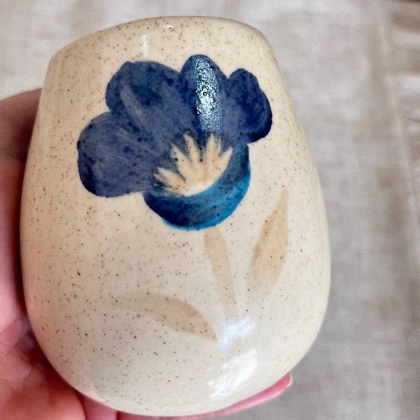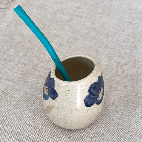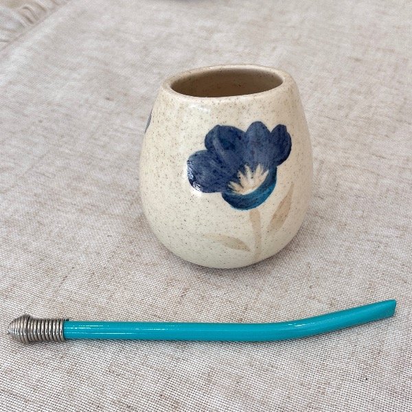 Mate en forma ovo de cerámica jaspeada pintada a mano.