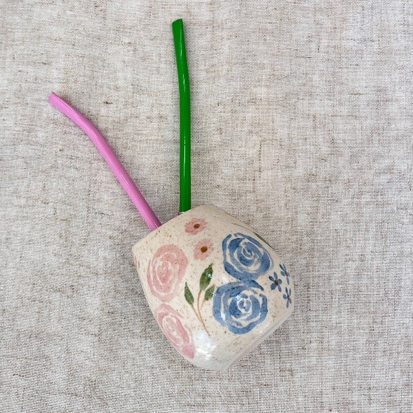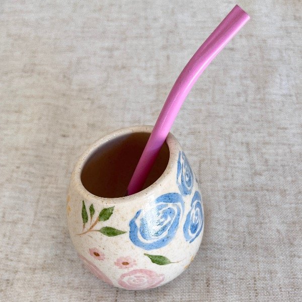 Mate en forma ovo de cerámica jaspeada pintada a mano.