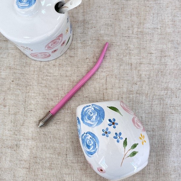 Mate ovo de cerámica blanca pintada a mano.