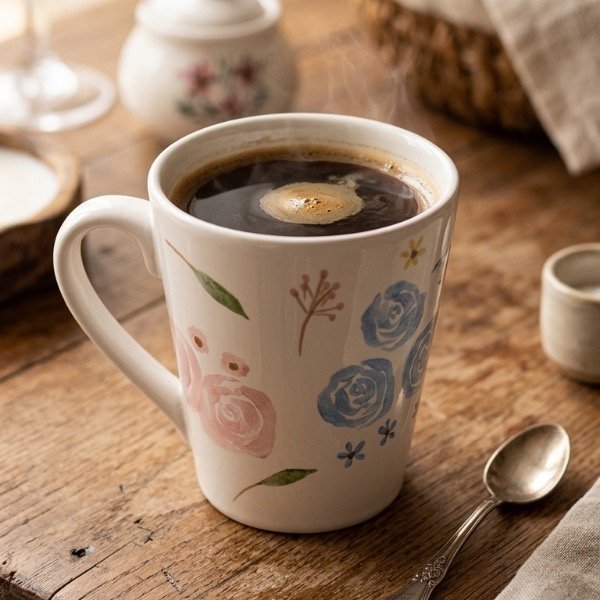 Taza de cerámica pintada a mano.